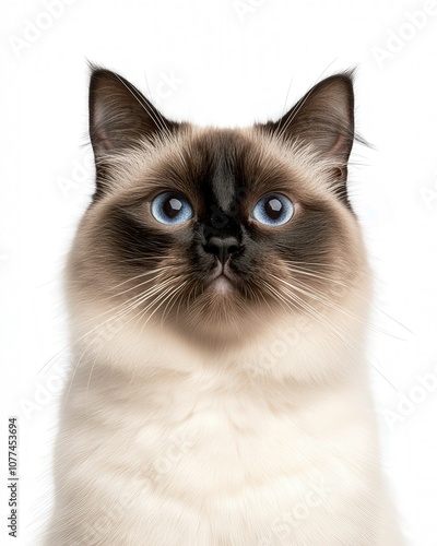 High-Resolution Close-Up Portrait of a Siamese Cat with Striking Blue Eyes and Detailed Fur Texture