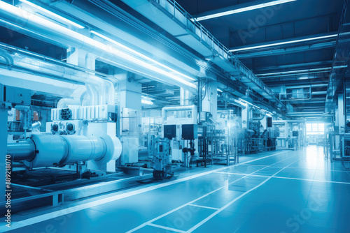 industrial, manufacturing, factory, technology, machinery, equipment, blue tone, production, facility, automation, engineering, plant, interior, modern, factory, high technology, automated, assembly line, precision, manufacture, business, process, clean, system, pipe, metal, futuristic, workspace, efficiency, large, light, technical, electrical, innovation