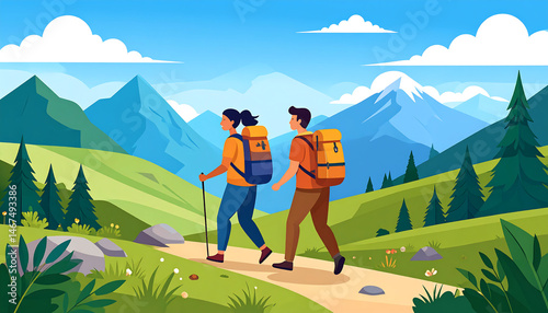 hiker, route, couple, map, expedition, mountain, guide, explore, nature, travel, trekking, journey, trip, holiday maker, path, adventure, backpack, man, woman, walking, outdoors, vacation, active, direction, male, summer, forest, togetherness, young, friendship, freedom, smiling, sport, friends, camping, navigation, people, lost, happiness, leisure, park, landscape, holiday, tour tourism, recreation, cartoon, colourful, design, vector