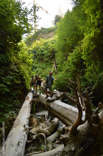 Hiking and camping on the Lost Coast among the Redwood (Sequoia) trees in Northern California, USA
