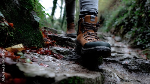 boot, walking, hiking, trail, forest, rocky, ground, closeup, outdoors, leg, jean, footwear, adventure, nature, landscape, travel, journey, moss, leaf, day, blurred background, texture, detail, rugged, hard-wearing, exploring, countryside