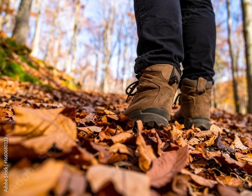 Hiking Boots on Autumn Forest Path