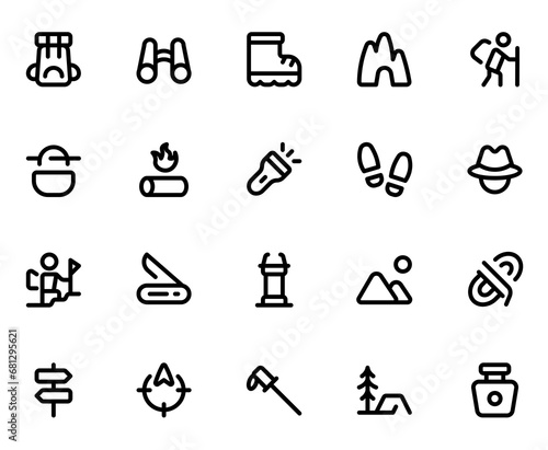 Hiking line icon sheet