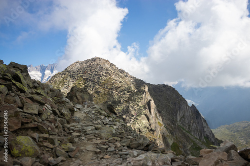 hiking trail leading to famous Aletsch glacier in Valais, Switzerland