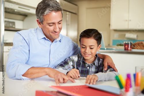 boy, father, son, eltern, homework, helping, encouraging, studying, indoor, home, writing, table, two people, horizontal, together, learning, assistance, book, file, folder, family, father, man, man, 40s, 40s, hispanic, people, person, male, children, children