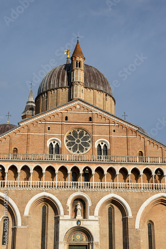 Historic domes, bell towers and spires of the Basilica of Saint Anthony in Padua, Veneto, Italy. Medieval Catholic church architecture and famous pilgrimage landmark.
