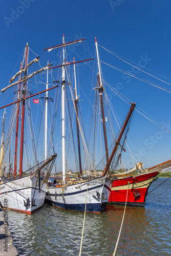 Historic tall ships on the IJssel river in Kampen, Netherlands