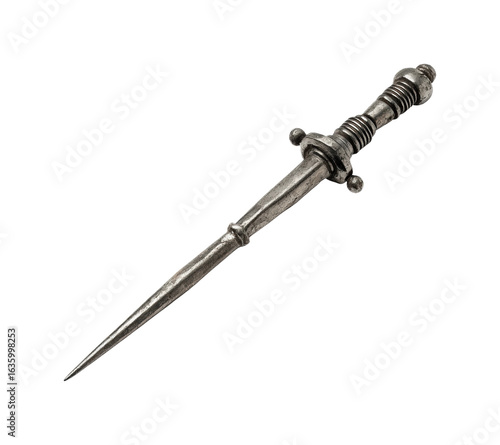 Historical action ancient dagger displayed in museum artefact culture isolated on transparent background, png