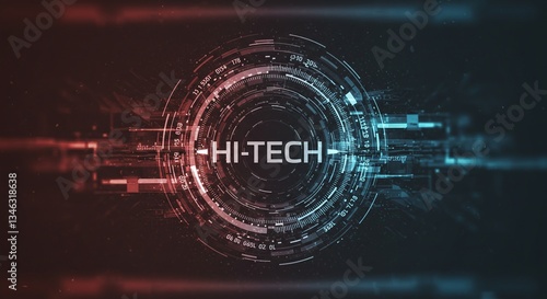 Hi-Tech Visual: A captivating graphic with a striking "HI-TECH" inscription in the center, interwoven with futuristic digital elements and vibrant colors.