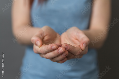 hand, human, baby, care, holding, palm, wedding, business, open, love, ring, begging, closeup, hand, woman, girl, protection, assist, present, blank, confident