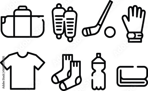 Hockey Gear Outline Set With Bag, Stick, Helmet, Glove, Shirt, Socks and Bottle
