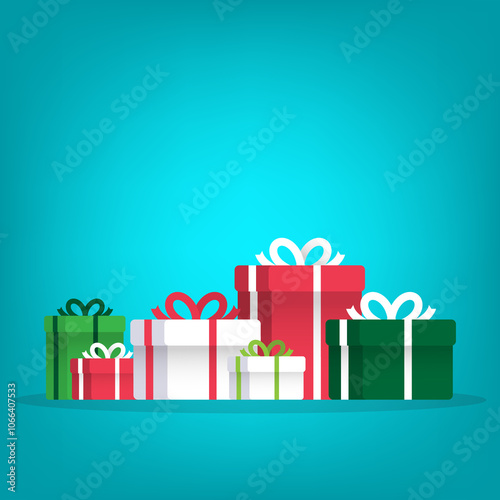 gift box, gift, present, vector, christmas, three-dimensional, cartoon, background, birthday, green, red, white, bow, holiday, package, anniversary, beautiful, card, cardboard, celebration, colours, decoration, design, discount, event, festive, greeting, happy, illustration, new year, object, cardboard box, paper, party, pile, ribbon, sale, shopping, snow, snowflake, surprise, symbol, winter, enclosed, christmas, new, year, box
