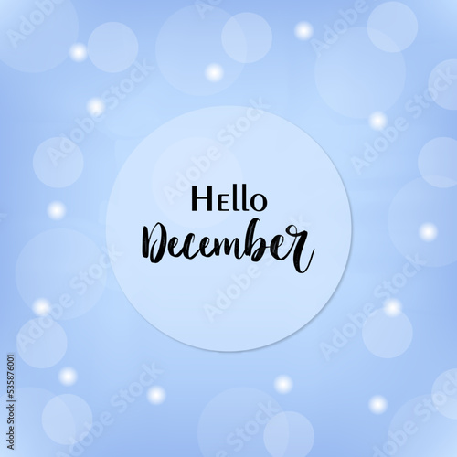 holiday card with soft bubbles lettering hello december in light blue background