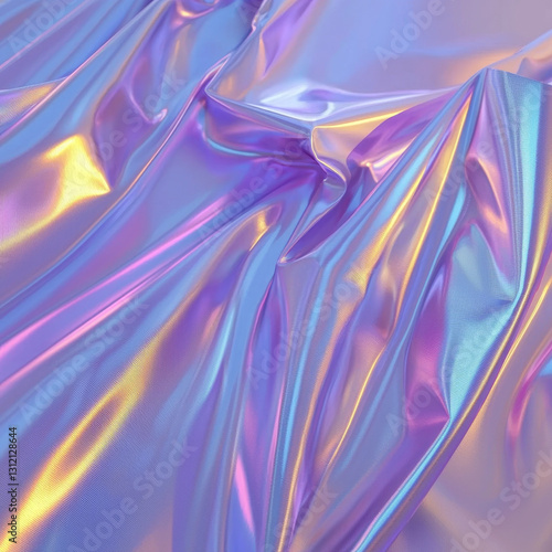 Holographic iridescent fabric, shimmering folds, pastel colors