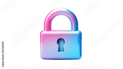 Holographic padlock isolated on white background