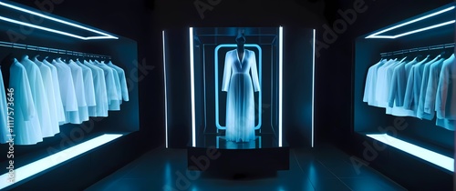 holographic, virtual, closet, user, try, clothes, indoor, wallpaper, poster, wide, background