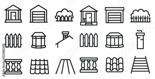 home, design, element, architecture, landscaping, building, construction, house, garden, garage, fence, roof, chimney, column, porch, outline, simple, minimal, graphic, black, white, exterior, urban, residential, structure