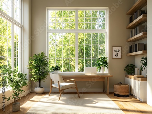 Home office inspiration modern workspace indoor plants sunny atmosphere