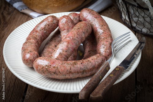 sausage, white, raw, dinner, epicure, pork meat, butcher, cooked, fresh, meat, closeup, bar-b-q, pepper, natural, beef, kitchen, delicious, fat, unhealthy, red, snack, wurst, homemade, garlic, traditional, uncooked, spice, eat, wood, tasty, lunch, gastronomy, deli, home, cookery, poland, ingredient, wooden, background, board, nourishment, cooking, spicey, food, product, fast, bread, knife