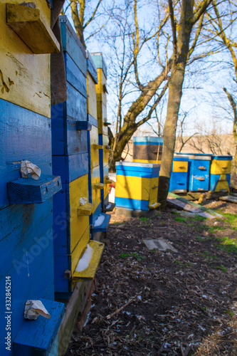 beach, blue, hut, yellow, beehive, colourful, summer, bee, green, house, hut, wooden, building, apiary, honey, colours, hive, sea, wood, street, vacation, outdoors, box, wintering, pollinate, group, propolis, village, work, awakening, many, landscape, sunny, animal, retro, tied-up, environmental, springtime, bee, garden, farm, agriculture, honey bee