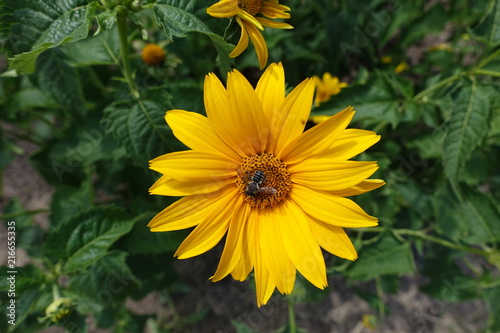Honey bee pollinating yellow flower of Heliopsis helianthoides