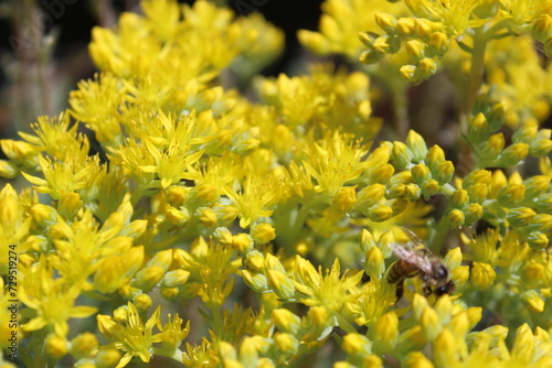 been, several, bee, fly, insect, drink, nectar, pollinate, flower, yellow, small, many, beautiful, honey, food, delicious, dessert, animal, wild, nature