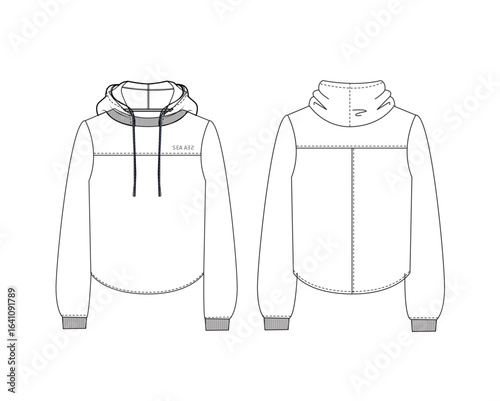 Hooded Sweatshirt technical fashion illustration flat technical drawing template.Front & back, sketch