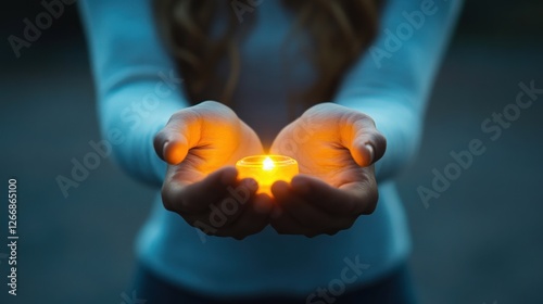 Hope's Gentle Glow: A Woman's Hands Offering a Lit Candle