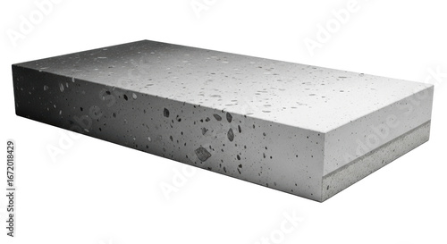 Horizontal polished concrete slab, charcoal to white gradient, visible aggregate, precise cut edge revealing inner layer, transparent background, crisp studio light, concept of architectural material