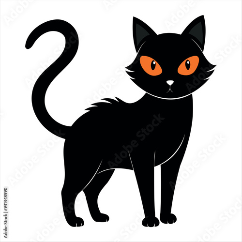 Horror black cat silhouette for Halloween design isolated on a white background