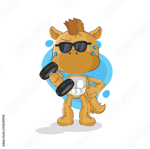 horse lifting dumbbell vector. cartoon character
