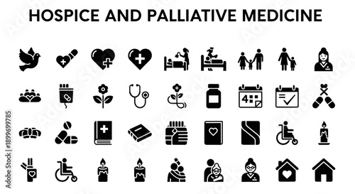 Hospice and Palliative Medicine Icons Array for Healthcare