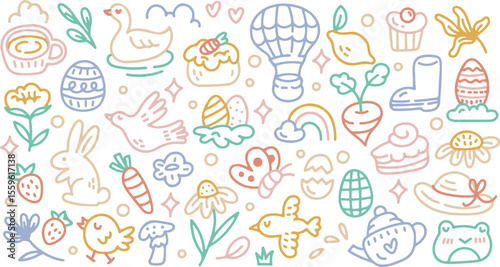 Hot Air Balloon and Travel Doodle Icons - Hand Drawn Clipart
