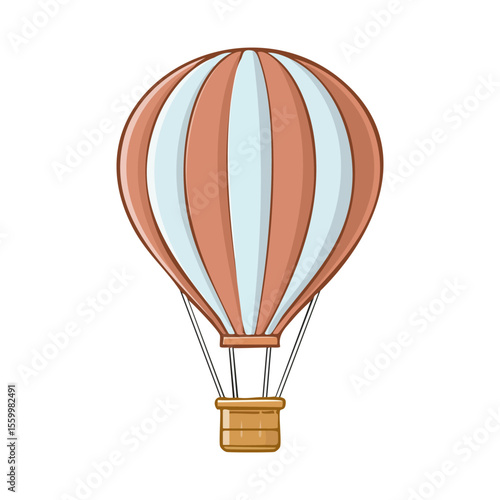 Hot air balloon blue stripe vector illustration. Graphic isolated colorful aircraft. Balloon festival.