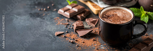 hot, chocolate, black, mug, cocoa, powder, mint, concrete, background, drink, beverage, dessert, sweet, rich, creamy, aroma, indulgence, refreshment, warming, snack, tasty, favor, cup, delicious, cosy, treat, morning, caffeine, textured, indulgent