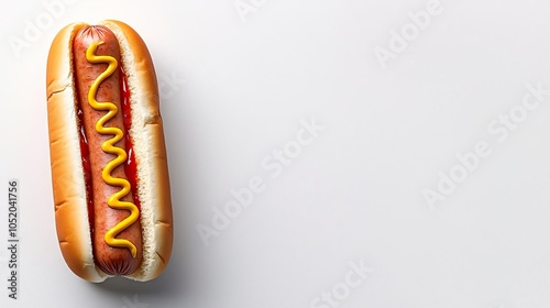Hot Dog with Mustard on White Background