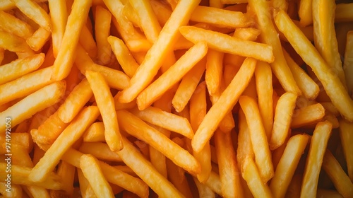 Hot fresh crispy golden colored French fries. Unhealthy fastfood. AI generation
