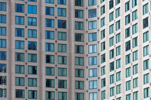 Hotel high rise building facade - closeup of many windows in Melbourne CBD.