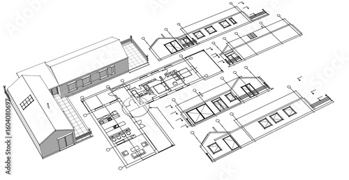 architecture, house, blueprint, plan, project, three-dimensional, apartment, building, planning, bungalow, background, residential, business, cad, concept, construction, design, engineering, exterior, facades, graphic, home, housing, idea, illustration, industry, modern, module, perspective, vignetting, space, style, technology, terrace, row house, villa, white, engineer, paper, crayons, document, drafting, print, designer, scheme, home building, drawing