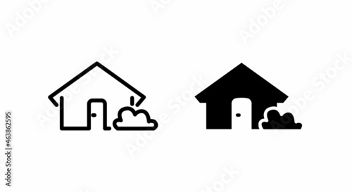 House icon with bush. home icon Editable stroke in trendy flat style isolated on background, page symbol for your web site design home icon logo