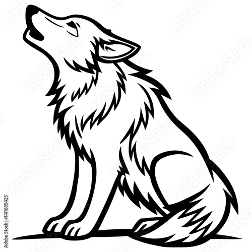 Howling Wolf Outline Design for Tattoos and Coloring Books Featuring Detailed Fur Texture