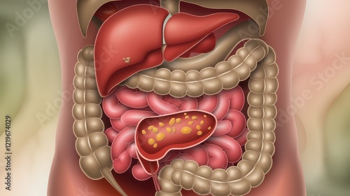 Human Digestive System Anatomy: Detailed Illustration of Internal Organs