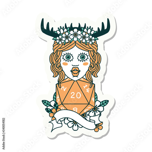 human druid with natural twenty dice roll sticker