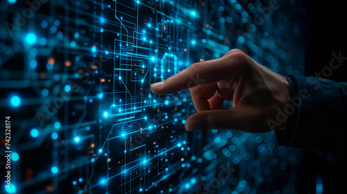 Human hand touching on big data network connection background