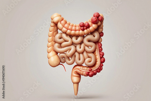 bowel, colon, human, anatomy, medicals, health, disease, polyp, red, growth, abnormal, internal, organ, digestive, system, biology, illustration, graphic, science, condition, disease, body