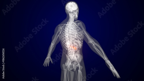 Human red colour pancreas anatomy. 3d render