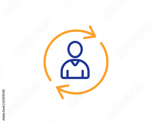 Human Resources line icon. User Profile sign. Person silhouette symbol. Refresh or Update sign. Colorful outline concept. Blue and orange thin line color icon. Person info Vector