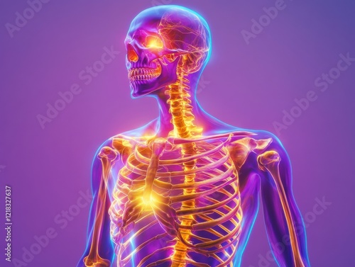 skeleton, skull, spine, shoulder, bone, anatomy, human, body, medicals, illustration, health, science, biology, system, structure, clavicle, sternum, scapula, humerus, cervical, rib, cartilage, joint, vertebral, column, skull, lower jaw, orbit, frontal, temporal, occipital, medicine, health care, educational, visualisation, three-dimensional, model, render, diagram, x-ray, scan, skeletal