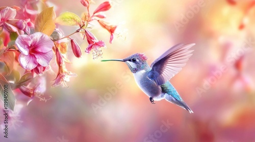 hummingbird, flower, pink, blossom, bird, nature, spring, summer, wildlife, beauty, garden, floral, nectar, wing, flight, colourful, vibrant, sweet, delicate, exotic, tropical, fauna, flora, bloom, sunlight, sunshine, light, bright, bokeh, background, macro, closeup, animal, avian, photo, image, picture, scene, view, pastel