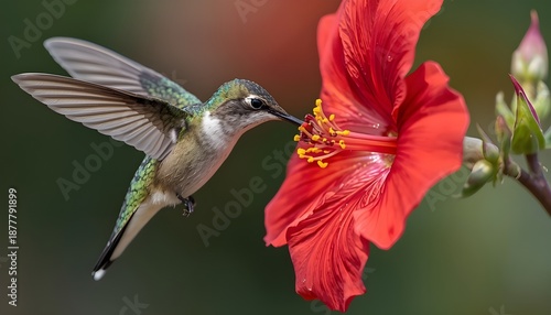 hummingbird, flower, feeding, red, hibiscus, nature, bird, nectar, green, grey, flower petals, wing, hover, garden, wildlife, beauty, iridescent, pollination